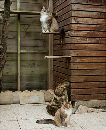 I discovered the Norwegian Forest Cat over twenty years ago. This distinguished animal having known how to keep its deep nature, conjugates ideally the feline grace and the wild appearance... Since then, my passion for him does not stop growing !